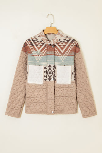 Light French Beige Aztec Quilted Patchwork Western Fashion Jacket